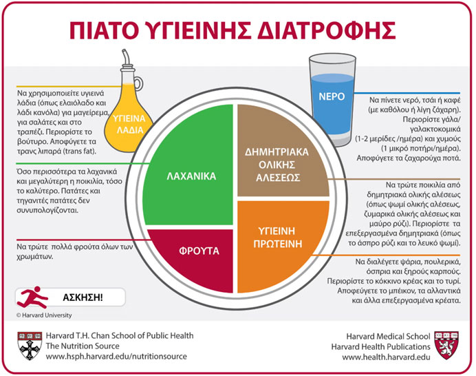 - ελαιόλαδο σε κάθε γεύμα, λαχανικά, φρούτα, ψάρια, όσπρια και δημητριακά ≥ 2 μερίδες/ημέρα
